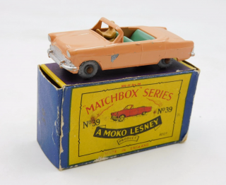 イギリスのレズニー(Lesney)社製のビンテージミニカー「レズニー フォード ゾディアック カブリオレ ピンク 元箱付属 1/66スケール ダイキャスト」です。
