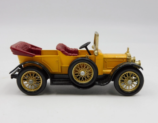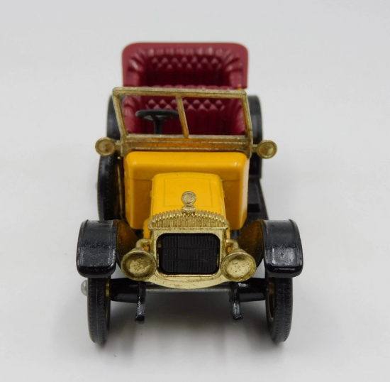 イギリスのレズニー(Lesney)社製のビンテージミニカー「レズニー ダイムラー 1911 イエロー 元箱付属 1/50スケール ダイキャスト」です。